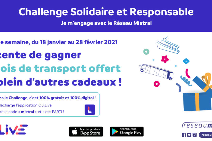 Le réseau Mistral remet les compteurs à zéro. Comme chaque semaine jusqu'au 28 février, vous pouvez tenter de gagner un mois d'abonnement de transport avec l'application OUILive.