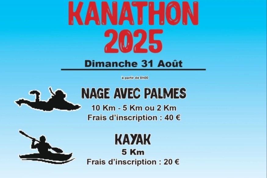 A partir de 08h :Nage avec palmes - 10km, 5 km ou 2 kmFrais d'inscription 40€Kayak - 5 kmFrais d'inscription 20€