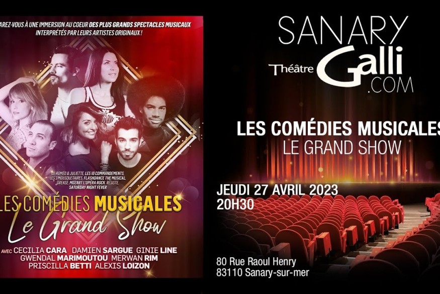 LES COMEDIES MUSICALES LE GRAND SHOW seront le 27 avril au Théâtre Galli de Sanary avec Helene Ségara