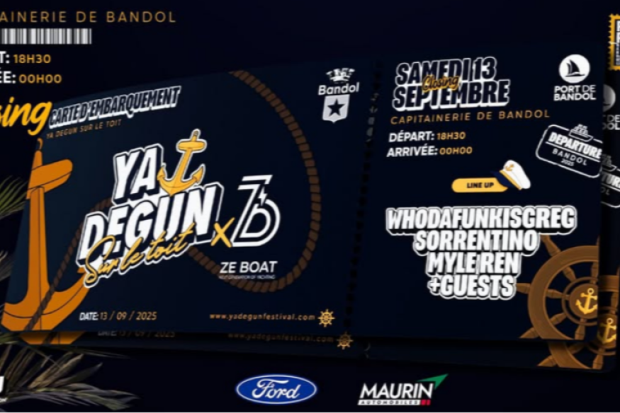 Le Samedi 13 septembre 2025, retrouvez le Ya Degun festival à la Capitainerie du Port de Bandol.