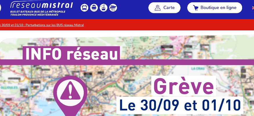 Attention si vous devez utiliser les transports en commun jeudi et vendredi dans la métropole de Toulon. Suite à un préavis de grève déposé au Réseau Mistral pour les journées du 30 septembre et 1er octobre, les services sur les lignes de bus seront assurés à 50%.