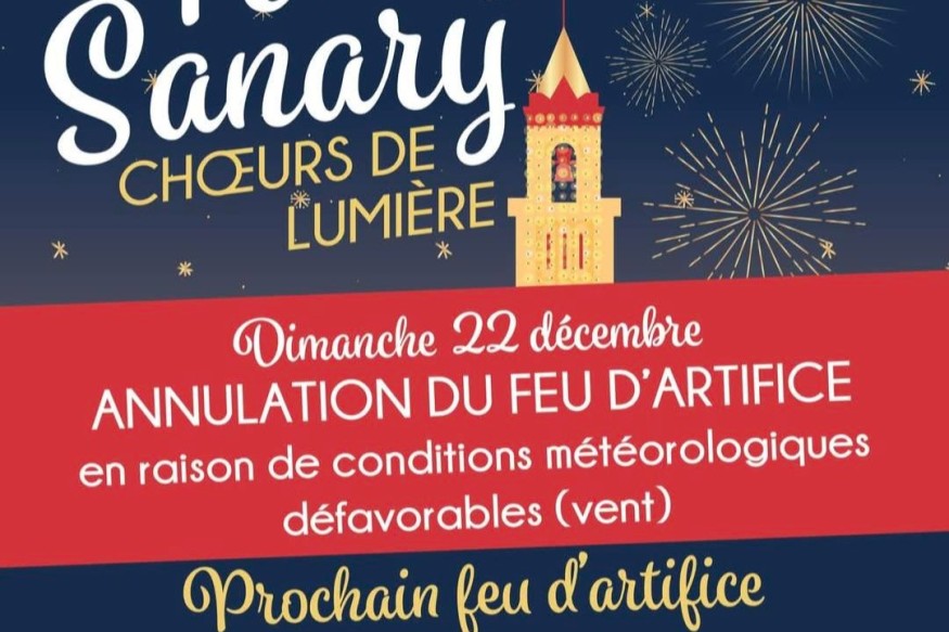 En raison des conditions météorologiques défavorables annoncées pour les prochains jours, la commune de Sanary-sur-Mer se voit dans l’obligation d’annuler le feu d’artifice prévu le dimanche 22 décembre 2024.